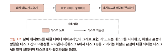 -> 방향성 비순환 그래프(Directed Acyclic Grapch)라고 부르며, airflow에서 각 태스크 별로 어떻게 실행되는 지 순서를 확인할 수 있는 그래프이며, 해당 그래프로 전체 파이프라인을 직관적으로 표현할 수 있다.