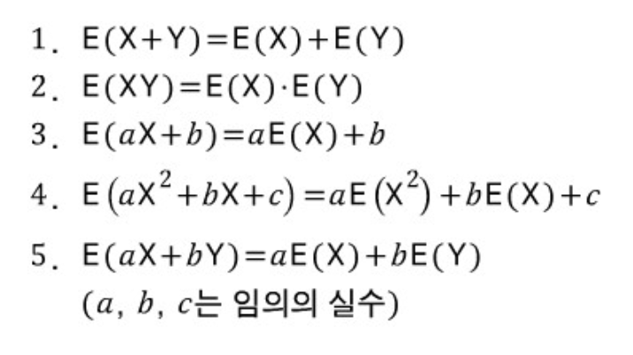 → 해당 건은 수식으로 설명을 이어가야 이해하기가 쉽다. 아래의 기댓값 연산에서의 규칙을 보여주는 공식들이다.