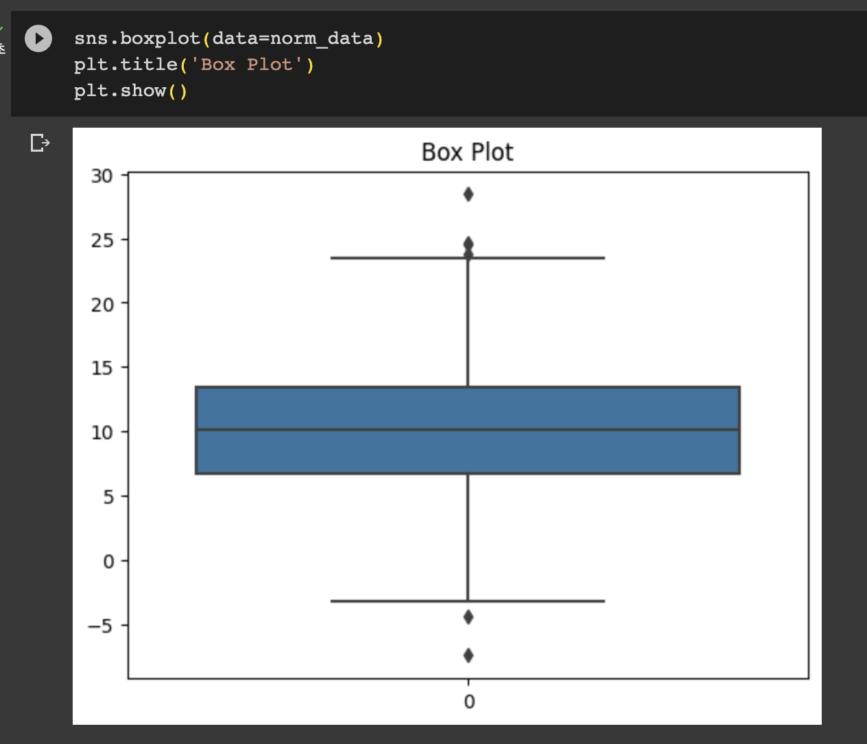 위 아래의 조그맣게 찍혀있는 부분은 이상치로 바라볼 수 있는 부분이긴 하나 데이터 마다 다르며 위키백과의 상세 해석을 보고 판단하기 바란다.