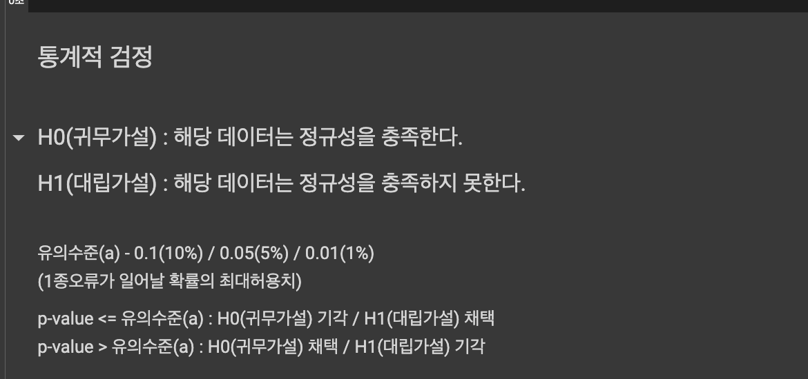 ( 디테일하게 풀면 사실 틀린 표현이긴 하나, 정규성 검정에 한해서 간단하게 보고 넘어가자.)