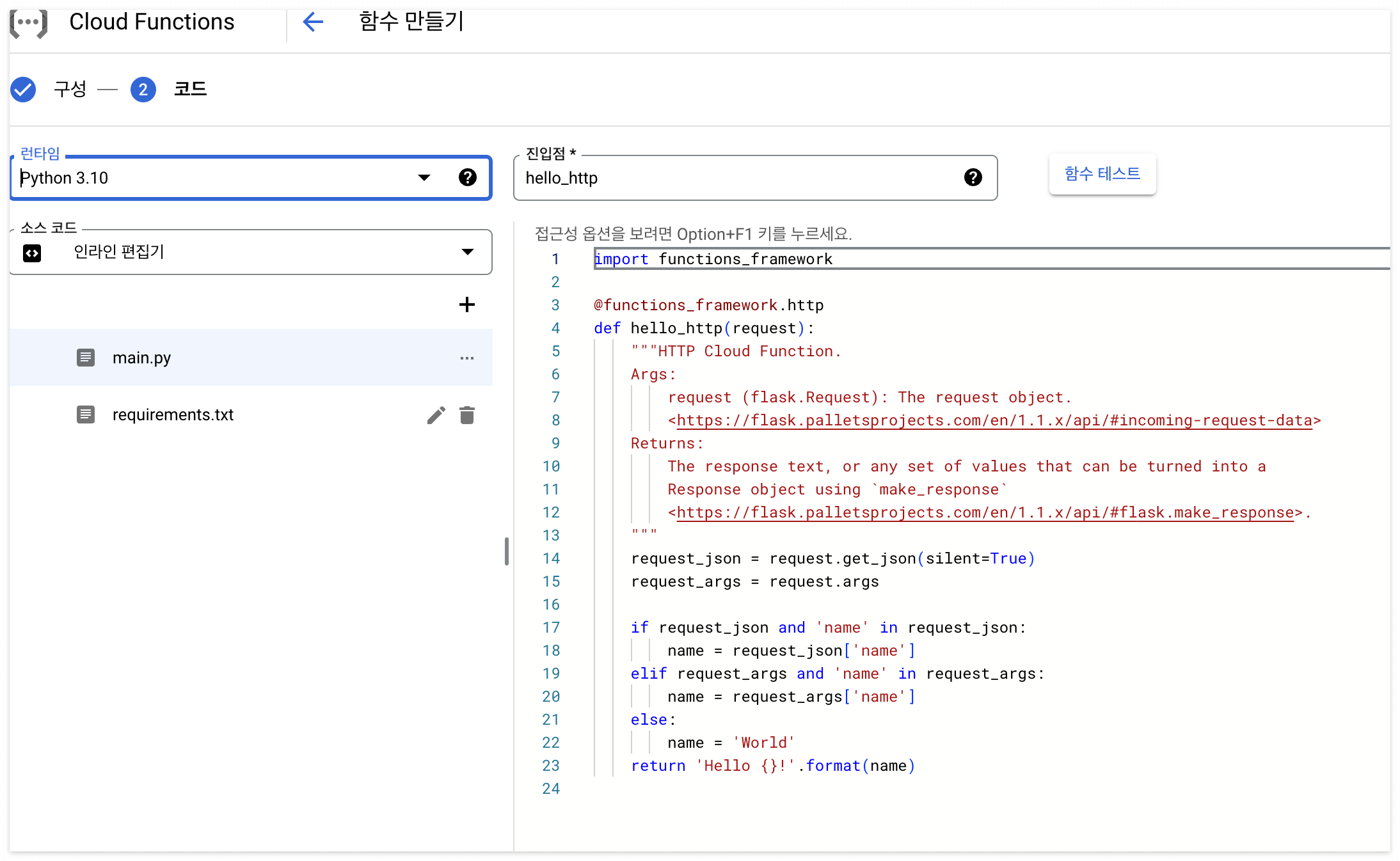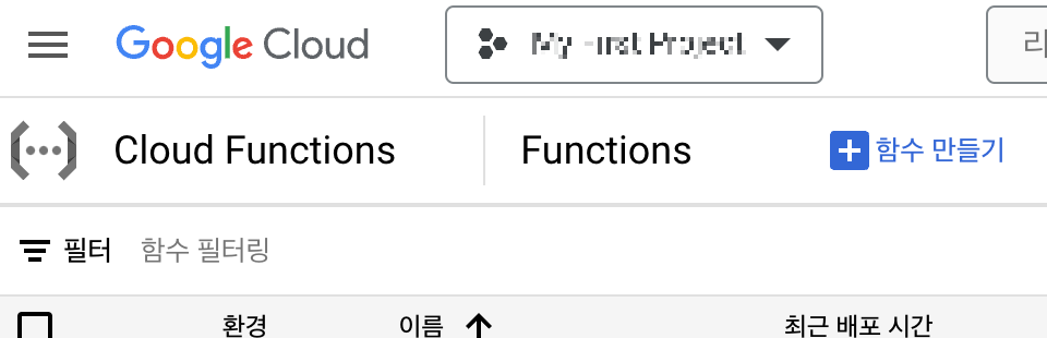 먼저, GCP의 Cloud Functions에 들어와서 함수 만들기 버튼을 클릭한다.