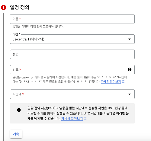 그렇게 조합한 cloud functions 가 자동으로 돌아갈 수 있도록 스케줄러를 생성하였다.