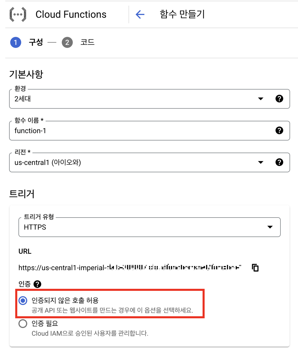 여기서 가장 중요한 것은 트리거 부분의 인증되지 않은 호출 허용을 클릭해주는 것이다.