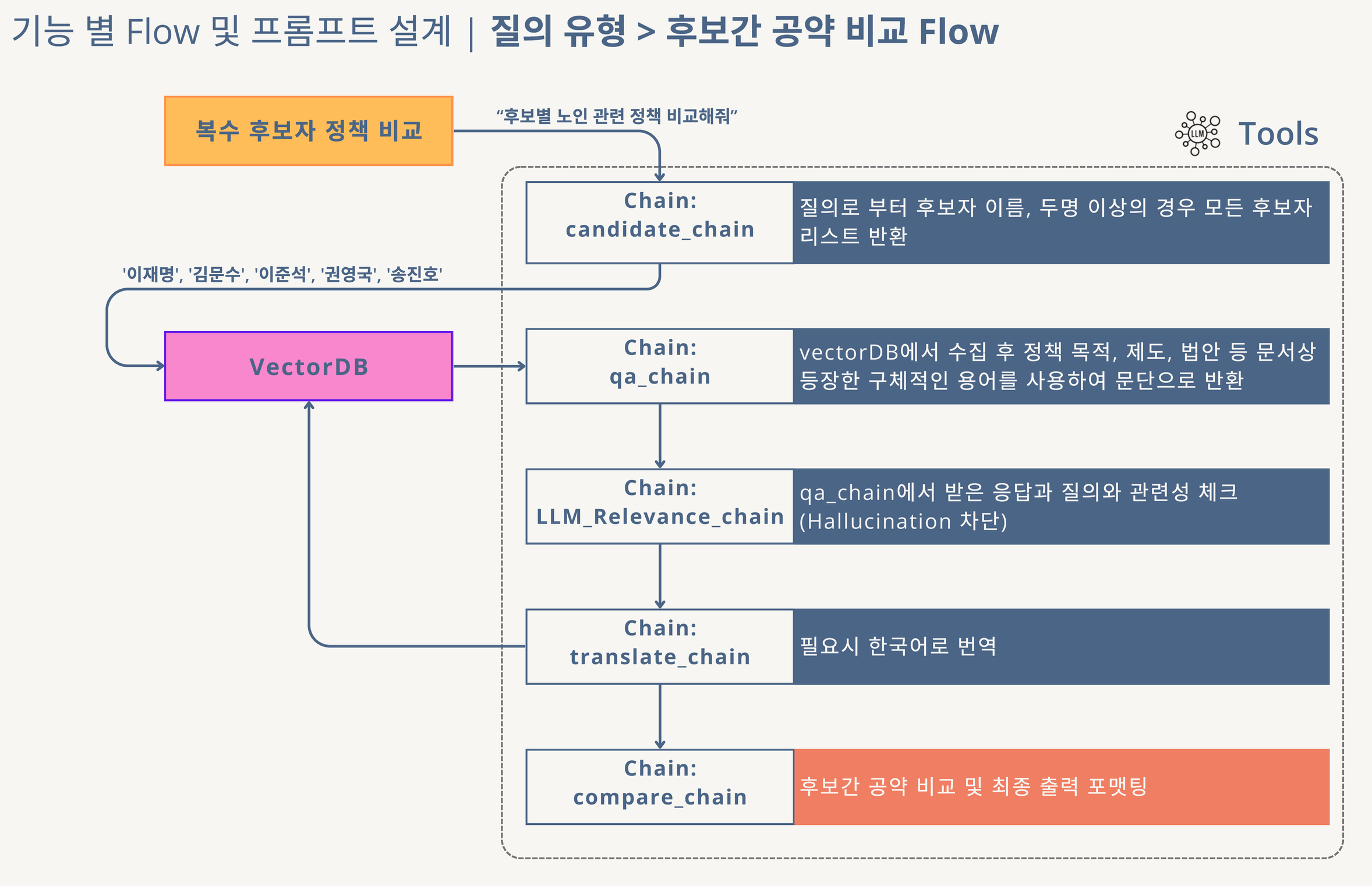| Retriever | 후보자별 필터링 (filter={"candidate": <name>}) 적용, k=6 설정 |