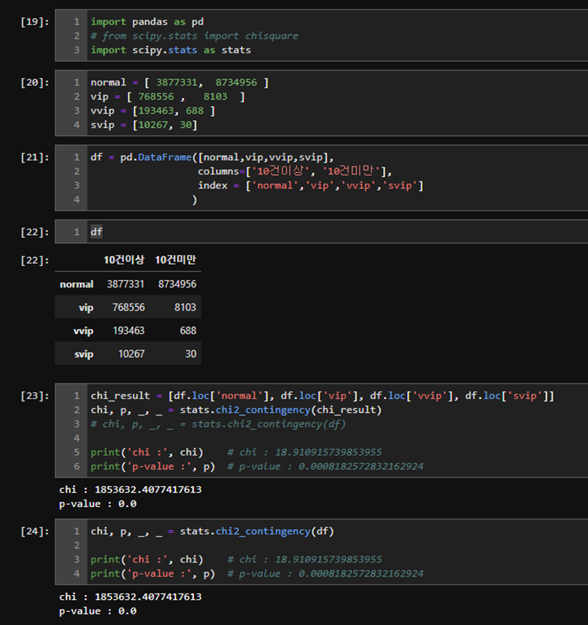 - 두 변수의 독립성을 검정하기 위해 카이제곱 독립성 검정 진행