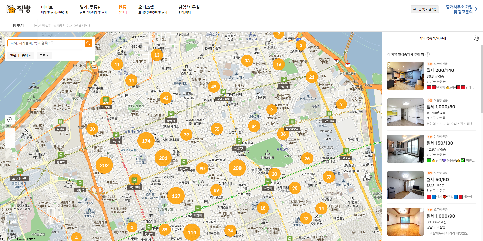 (직방에 존재하는 매물들을 홍보하는 용도가 아닌 가장 첫 화면을 캡쳐한 화면 입니다. - 홍보와는 무관합니다.)